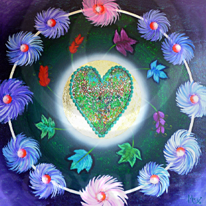 Este cuadro busca ser un instrumento de meditación para quienes la practican, desean practicarla o para quienes buscan armonizar un lugar, mediante la enseñanza de afecto hacia la naturaleza que ella nos dejó por medio de un corazón resplandeciente que evoca todo lo sagrado y místico que significa ella para el mundo del arte. Los colores empleados buscan producir mediante sus vibraciones una unión equilibrada entre cuerpo, mente y espíritu. Busca un movimiento espiritual hacia la apertura del amor, que nos inspira a ser buenos, ser amables, amistosos y compasivos. La energía más poderosa y liberadora que tenemos es el AMOR. Esta trae paz, belleza interior y poder intelectual. Estos colores buscan un balance para fortalecer el cuerpo, simbolizar el ciclo de armonía de la naturaleza, la abundancia económica, la prosperidad, la pasión, el amor, la juventud, la felicidad y el sentimiento de unión.